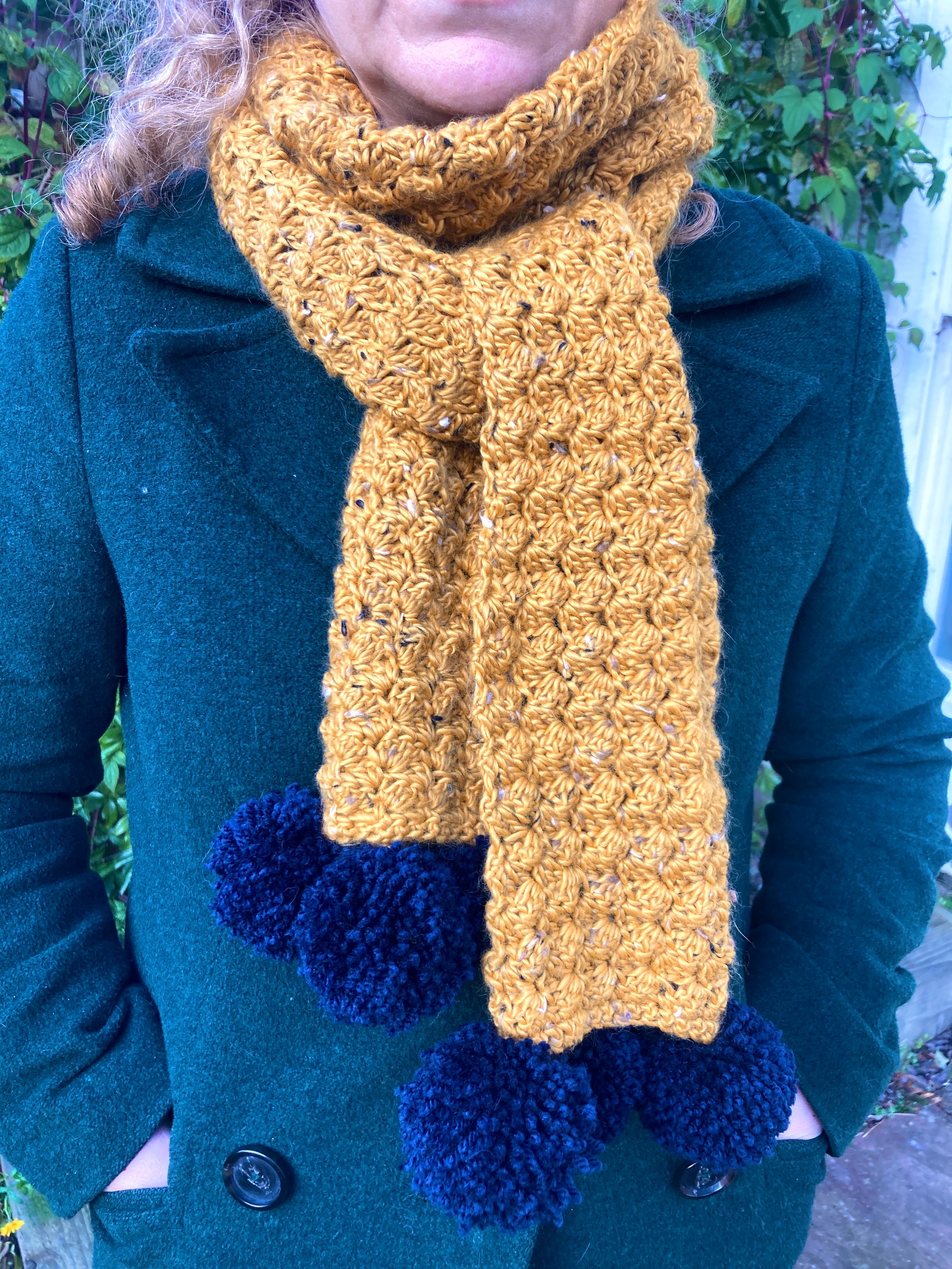 Mustard & Navy Pom Pom Scarf