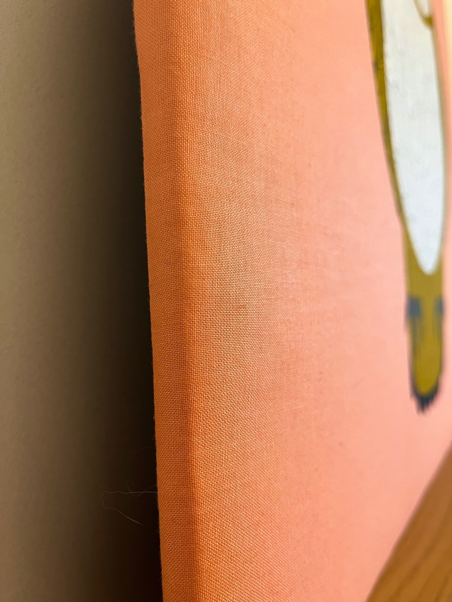 I made this upholstered wall art with slight padding and mounted on board. I feel it’s a unique and creative way to display beautiful fabric. This approach adds dimension and texture to the art, making it stand out from traditional framed or canvas pieces.